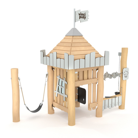 Play tower with swing 2,5, wood posts & plastic slide KPL101701